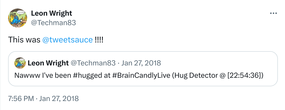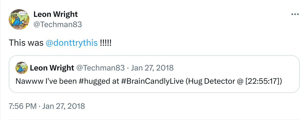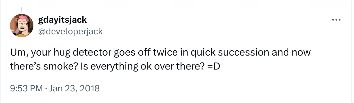 All was not well by Friday morning, the hug detector worked a little too well and I ended up getting filtered from twitter searches.